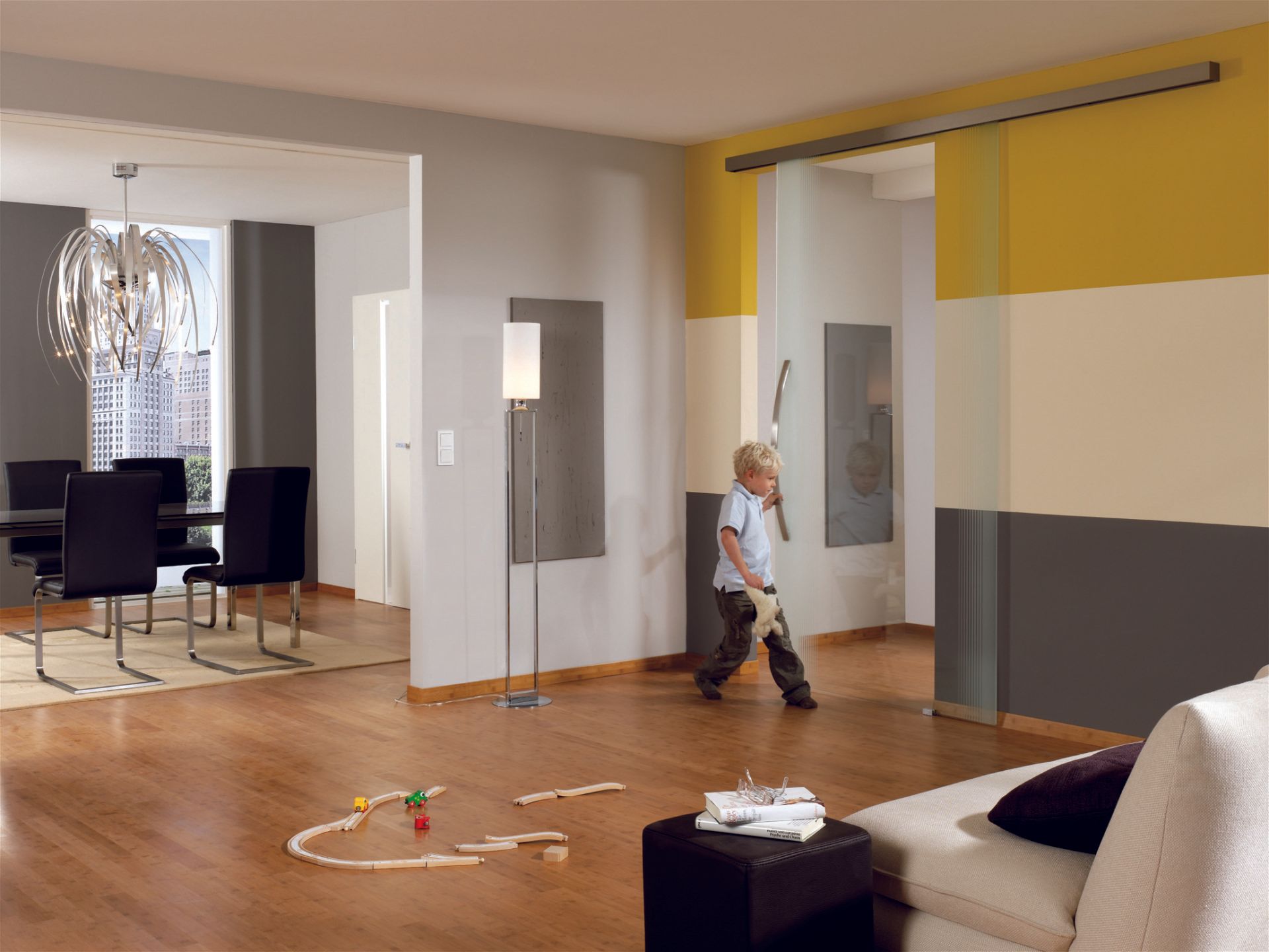 Schiebetüren verbinden Räume und sparen dabei eine Menge Platz. Mit Laufschienen, Beschlägen und Glasvarianten entstehen Durchgänge im privaten und öffentlichen Raum. Mit einer Automatik auch als barrierefreie Glasschiebetür. Schiebetüren sind platzsparend – geöffnet stehen sie nicht im Weg. Sie dienen als idealer Türersatz, sogar vor einer vorhandenen Türzarge. Mit zwei Türflügeln sind sie ein hervorragender Raumteiler und eignen sich auch als Schranktür. Als Hängesystem ohne Bodenschiene bieten sie Barrierefreiheit ohne Stolperkante.